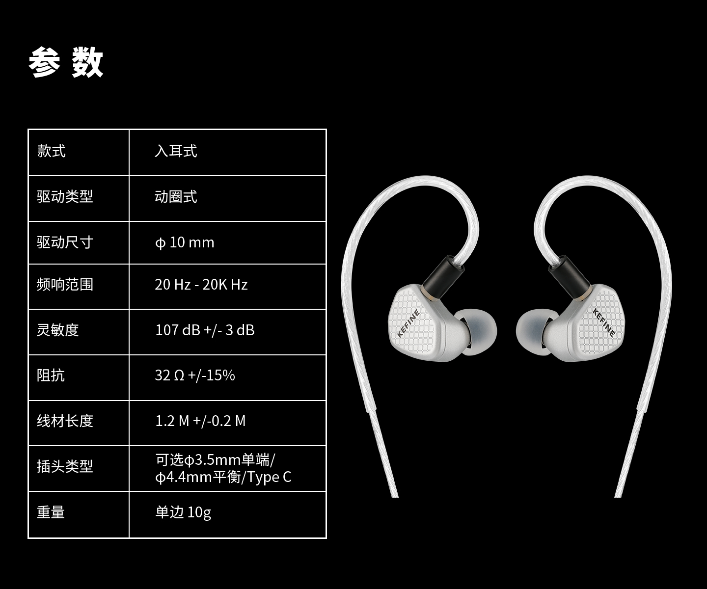Klean SV - 10mm DLC 振膜动圈喇叭耳机