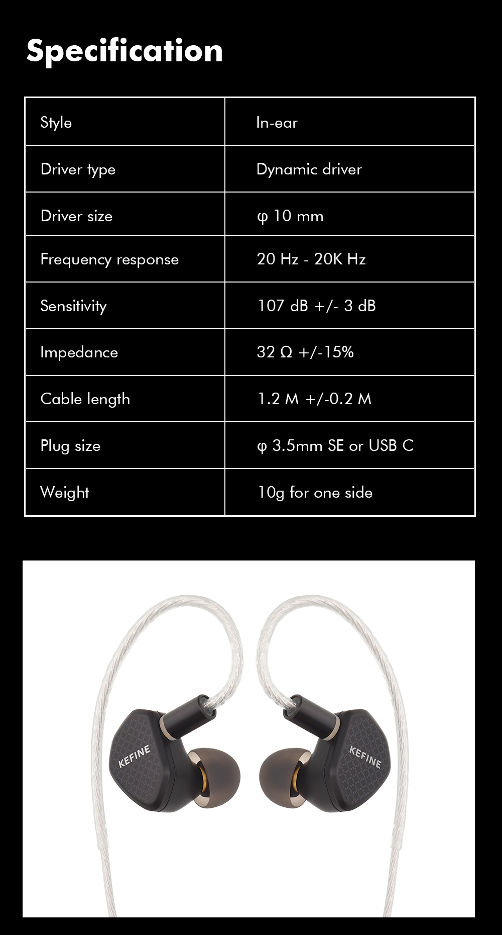 Klean - 10mm DLC diaphragm dynamic driver earphone