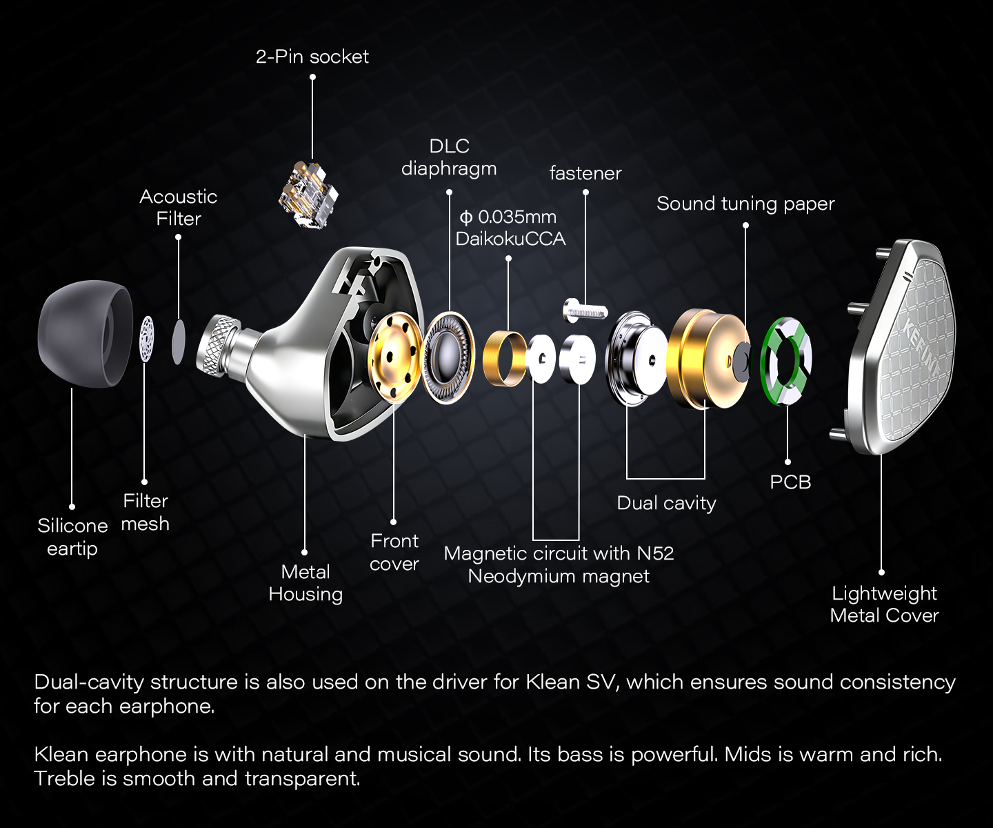 Klean SV - 10mm DLC diaphragm dynamic driver earphone